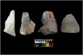| Description / विवरण | There are n-4 of intact utilized flake cores made up of Chert. Some of them have bulge of percussion, some are flat flakes and few are retouched. |