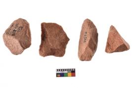 | Description / विवरण | A specimen of flake tool with prominent flaking marks. It made up of a short flakes with sides trimmed. It is rectangular in shaped. |