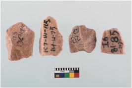 | Description / विवरण | Four worked utilised flakes with sharp edges.Many a times they are pointed at one end. |