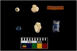 | Description / विवरण | There are n 6 beads. There is a great variation in the shapes like the tubular bead which is orange in color, one royal blue bead tubular shape with collar on the extreme ends,one concave bicone in creamish color, two annular bead one in yellow and other in royal blue color respectively. |