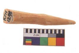 | Description / विवरण | Specimen of bone point with conical body and circular in cross section. It is creamish in colour. |