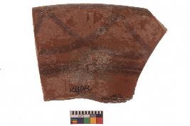 | Description / विवरण | Specimen of red ware with decorative red pigment. |