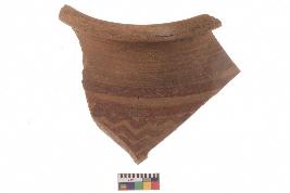 | Description / विवरण | Specimen of red ware with decorative wavy line pattern |