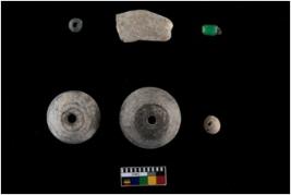 | Description / विवरण | The beads are convex cone, spherical in shape and the glass bead is cylindrical in shape. Also the glass beads hole is clogged and it cant be used for beading. It also consist of a terracotta sinker. |