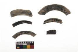 | Description / विवरण | Groved and ridged glass bangle pieces. |
