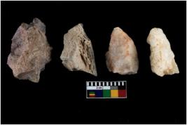 | Description / विवरण | There are n-4 of intact utilized flake cores made up of Chert. Some of them have bulge of percussion, some are flat flakes and few are retouched. |