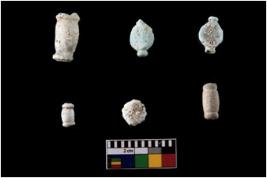 | Description / विवरण | There are total six objects.The beads are collared barrel and concave bicone in shape. Sizes vary from micro to medium sized bead. |