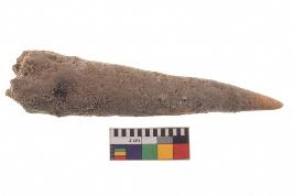 | Description / विवरण | Specimen of bone point with conical body and circular in cross section. It is blackish in colour. |