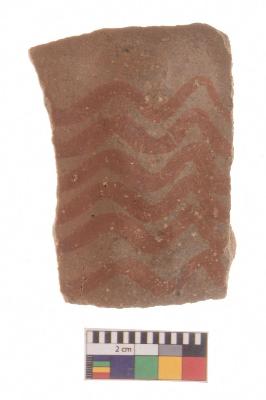| Description / विवरण | Specimen of red ware with decorative wavy line pattern. |