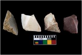 | Description / विवरण | There are n-4 of intact utilized flake cores made up of Chert. Some of them have bulge of percussion, some are flat flakes and few are retouched. |