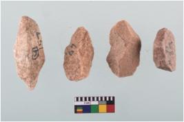 | Description / विवरण | Four worked utilised flakes with sharp edges.Many a times they are pointed at one end. |