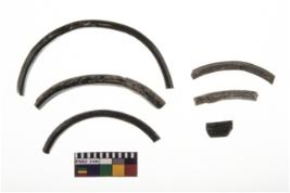 | Description / विवरण | Groved and ridged glass bangle pieces. |
