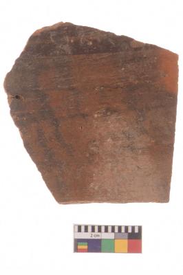 | Description / विवरण | Specimen of red ware with decorative black pigment. |