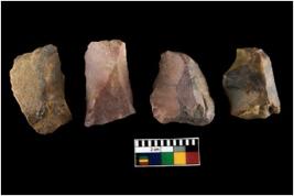 | Description / विवरण | There are n-4 of intact utilized flake cores made up of Chert. Some of them have bulge of percussion, some are flat flakes and few are retouched. |