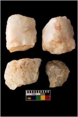 | Description / विवरण | There are n-4 of cores. All are made up of Quartz. All of them are intact fully fluted cores without any trace of crested ridge flakes. |
