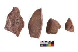| Description / विवरण | A specimen of flake tool with prominent flaking marks. It made up of a short flakes with sides trimmed. It is rectangular in shaped. |