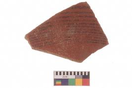 | Description / विवरण | Specimen of black on red ware with decorative geometric Linear Pattern painting. |