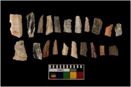 | Description / विवरण | Out of 21 blades and debitage counted altogether, 12 are chert and 9 quartz |