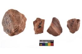 | Description / विवरण | A specimen of flake tool with prominent flaking marks. It made up of a short flakes with sides trimmed. It is rectangular in shaped. |