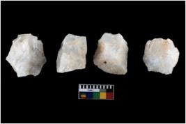| Description / विवरण | Specimen of a fluted cores having several broad fluted marks indicating the detached blades from it. |