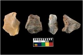 | Description / विवरण | There are n-4 of intact utilized flake cores made up of Chert. Some of them have bulge of percussion, some are flat flakes and few are retouched. |
