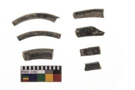 | Description / विवरण | Groved and ridged glass bangle pieces. |