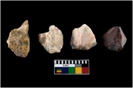 | Description / विवरण | There are n-4 of intact utilized flake cores made up of Chert. Some of them have bulge of percussion, some are flat flakes and few are retouched. |