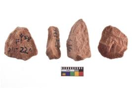 | Description / विवरण | A specimen of flake tool with prominent flaking marks. It made up of a short flakes with sides trimmed. It is rectangular in shaped. |