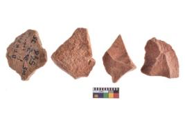 | Description / विवरण | A specimen of flake tool with prominent flaking marks. It made up of a short flakes with sides trimmed. It is rectangular in shaped. |