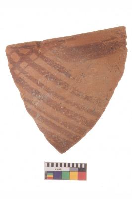 | Description / विवरण | Specimen of red ware with decorative geometric Linear Pattern painting. |
