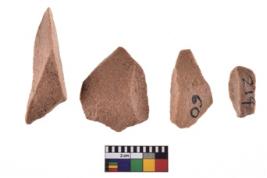 | Description / विवरण | A specimen of flake tool with prominent flaking marks. It made up of a short flakes with sides trimmed. It is rectangular in shaped. |
