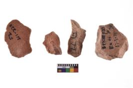 | Description / विवरण | A specimen of flake tool with prominent flaking marks. It made up of a short flakes with sides trimmed. It is rectangular in shaped. |