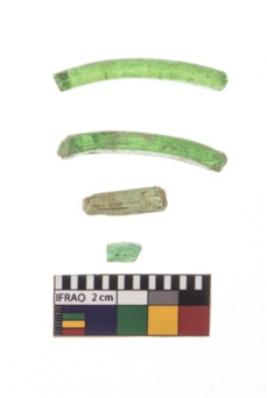| Description / विवरण | Glass bangle pieces of green pigment. |