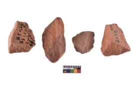 | Description / विवरण | A specimen of flake tool with prominent flaking marks. It made up of a short flakes with sides trimmed. It is rectangular in shaped. |