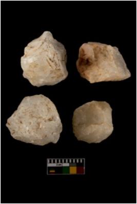 | Description / विवरण | There are n-4 of cores. All are made up of Quartz. All of them are intact fully fluted cores without any trace of crested ridge flakes. |