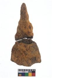 | Description / विवरण | A partially broken specimen of a leaf shaped arrow head , it is made of iron, at present it is highly corroded. |