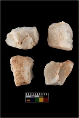 | Description / विवरण | There are n-4 of cores. All are made up of Quartz. All of them are intact fully fluted cores without any trace of crested ridge flakes. |