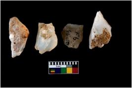 | Description / विवरण | Four utilised worked cores with sharp edges. Some of them are tapering at one end. |