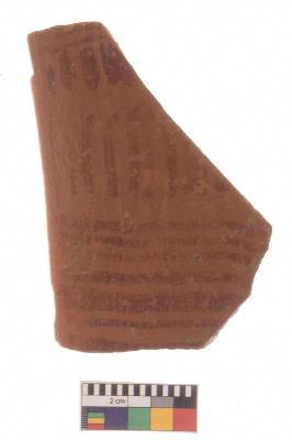 | Description / विवरण | Specimen of red ware with decorative red pigment. |