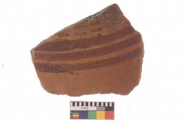 | Description / विवरण | Specimen of red ware with decorative red pigment. |