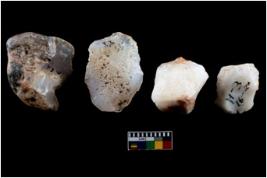 | Description / विवरण | A specimen of fluted core having several broad fluted marks indicating the detached blades from it |