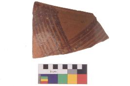 | Description / विवरण | Specimen of red ware with decorative geometric Linear Pattern painting. |