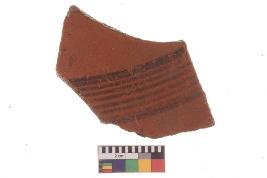 | Description / विवरण | Specimen of black on red ware with decorative black pigment. |