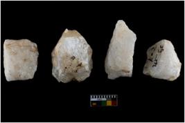| Description / विवरण | Specimen of fluted cores having several broad fluted marks indicating the detached blades from it. |