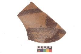 | Description / विवरण | Specimen of red ware with decorative geometric painting. |