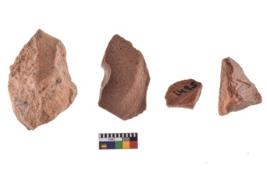 | Description / विवरण | A specimen of flake tool with prominent flaking marks. It made up of a short flakes with sides trimmed. It is rectangular in shaped. |