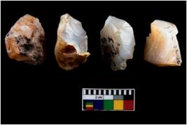 | Description / विवरण | A specimen of fluted core having several broad fluted marks indicating the detached blades from it |