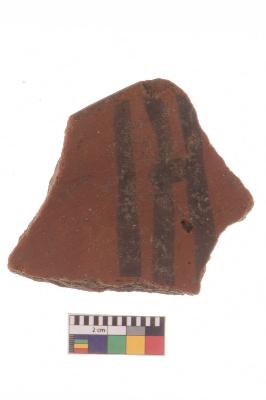 | Description / विवरण | Specimen of red ware with decorative black pigment. |