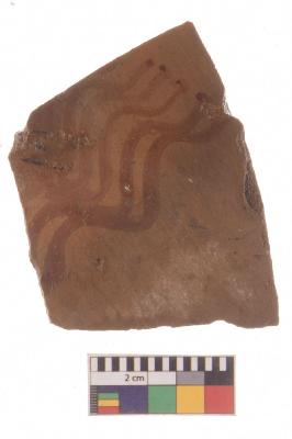 | Description / विवरण | Specimen of red ware with decorative wavy line pattern. |