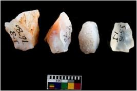 | Description / विवरण | A specimen of fluted core having several broad fluted marks indicating the detached blades from it |